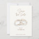 Mit unserer 2 Gold Wedding Rings Save the Date Card verkünden Sie Ihren besonderen Tag stilvoll und feiern Eleganz, Spannung und Romantik. Diese charmante minimalistische Karte zeichnet sich durch eine zarte Aquarellmalerei aus, die zwei goldene Hochzeitsringe illustriert, ein zeitloses Symbol für Liebe, Engagement und die wunderschöne Reise vor sich. Das weiche, rustikale Kunstwerk verbindet moderne Einfachheit mit klassischer Eleganz und schafft eine einladende Atmosphäre der Vorfreude für Ihre Hochzeit. Die Karte ist so konzipiert, dass sie die wichtigsten Informationen mit Klarheit hervorhebt. Durch ihr schlichtes Layout wird sichergestellt, dass Ihre großen Neuigkeiten leicht zu lesen und unvergesslich sind. Die harmonische Mischung aus warmen Goldtönen und raffiniertem Aquarellstil verleiht Wärme, während der minimalistische Ansatz den Fokus auf Ihre fröhliche Ankündigung behalte. Diese Save the Date Karte ist perfekt für Paare, die Naturschönheit, herzliche Symbolik und eine Touch zeitgenössischer Kunst schätzen. Sie verlasst einen bleibenden Eindruck und lädt Liebende zu unvergesslichen Feierlichkeiten ein