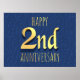 2. Jubiläum Design auf einem blauen Imitat Leder Hintergrund.