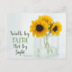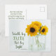 Inspiration Zitat florale Postkarte zeigt schöne gelbe Sonnenblumen in einer Vase und zeigt Bibel Verse 2 Korinthians 5:7, "Walk by Glaube nicht durch Sicht" _