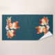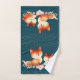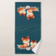 Serviette sertie avec un dessin de 2 renards rouges. L'un debout l'autre pose. Dessiné avec aquarelle. Des étoiles en or faux décorent le ciel au-dessus d'elles.
