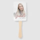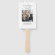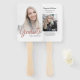 A modern and trendy graduation photo hand fan to share the joy of a high school or college graduation with family and friends. Replace the photos on the front, reverse side and the wording by clicking the "Personalize" button.