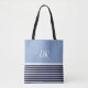 2 Töne blaue horizontale Streifen Monogramm. Tasche