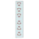 Ein Tischläufer, entworfen mit einer Illustration von 2 Weihnachtsreh Springen. Hirsche sind kariert aus schwarzem und rotem Lumberjack, dazwischen liegt ein kleines Herz. Karierte Weihnachtsdekorationen in Rot und Schwarz hängen von oben ab. Hellblauer Hintergrund.