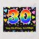 Die Vorderseite dieses farbenfrohen, liebevollen und lustigen Geburtstags-Thema Postkarte zeigt eine große Zahl "30" mit einem Regenbogenspektrum inspirierte Muster. Es enthält auch die Meldung "Happy 30 th Birthday", und einen personalisierten Empfängernamen. Die Vorderseite hat zusätzlich ein lebendiges und farbenprächtiges Hintergrundmuster mit liebevollen Herzformen verschiedener Größen. Auf dem Rücken befindet sich eine individuell anpassbare Geburtstagsgrüßnachricht, oder es könnte sein, dass sie gelöscht und leer verlassen wird, wenn eine Nachricht von Hand geschrieben werden soll. Eine personalisierte Geburtstagskarte wie diese ist vielleicht eine lustige Art, jemandes dreißigsten Geburtstag zu feiern. Postkarten wie diese können auch benutzt werden, um die Gäste zu einem Geburtstagsfest einzuladen, das für jemanden abgehalten wird, der 30 Jahre alt ist. [~Z0000448]