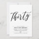 Feiern Sie Ihren besonderen Tag mit dieser einfachen, minimalen 30. Geburtstagsfeier Party Einladung. Dieses Design verfügt über ein stilvolles Schriftzeichen "Dreißig" mit einer Schwarz-Weiß-Kombination. Mehr Geburtstagseinladungen für Erwachsene und Party-Zubehör sind in meinem Shop BaraBomDesign erhältlich.
