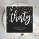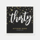 Moderne Servietten aus dem 30. Party mit einem stilvollen schwarzen Hintergrund, Goldkonfetti, dem Titel 'dreißig' in einem fett-weißen Drehbuch-Schriftart, dem Sprichwort 'Happy Geburtday', ihrem Namen und dem Datum der Feier.