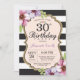 30e anniversaire Invitation Femmes. Or floral noir