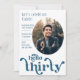 "Bonjour trente" Invitation d'anniversaire avec photo et texte turquoise sombre.