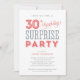30èmes invitations d'anniversaire de surprise avec une conception de rose, de gris, et blanche d'amusement. Personnalisez les mots pour vos 30èmes besoins de fête.