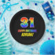 Dieses lustige, farbenfrohe und fröhliche Geburtstags-Thema Papier-Platte-Design zeigt eine große Zahl "31" und die Nachricht "GLÜCKLICH BIRTHDAY", beide mit einem Regenbogenspektrum inspirierte Muster-Färbung, zusammen mit einem kühnen gelben personalisierten Namen. Der Hintergrund ist schwarz. Geburtstagsthematische Teller wie diese könnten sich bei einer Feier zur Ehrung von Jemandem, der seinen 31. Geburtstag feiert, als nützlich erweisen. [~Z0000488]