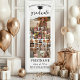Abschluss Banner, die als Willkommenszeichen oder Foto-Hintergrund verwendet werden können. Ein trendiges Skript und Graduierungspapier machen dies zu einem modernen und minimalen Design mit schwarzem Schrift auf weißem Hintergrund. Eine lustige Möglichkeit, Erinnerungen zu erfassen und sie mit Freunden und Familie zu teilen, auf Ihrer Abschlussfeier.