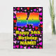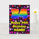 The front of this happy and joyful birthday themed greeting card design for large number 34 with a rainbow spectrum gradient inspirred pattern, along with the message "Happy 34th Birthday", and a personalized name. The background of the front feature a pattern of heart shapes with colors like pink, red and purple. The inside has a personalized birthday greeting message, or could perhaps be cleared and left blank if a message is to be written by hand instead. In loving, editable birthday greeting card like this might be a fun way to deliver some birthday wishes to somebody who is celebrating their thirty-fourth birthday. [~ Z0000551]