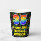 Dieses lustige und aufregende musikalische Geburtstagszeitpapier-Cup-Design zeichnet sich durch eine große Zahl "35" mit einem inspirierten Regenbogenspektrum-Muster aus, zusammen mit der Meldung "Happy 35 th Birthday" und einem bearbeitbaren Namen. Der Hintergrund ist farbenfroh, mit Musiknoten und Symbolen verschiedener Farben und Größen. Lebhafte, farbenfrohe Papiertücher wie diese könnten sich bei einer Geburtstagsparty zum Feiern des fünfunddreißigsten Geburtstages von jemandem amüsieren. [~Z0000541]