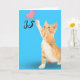 Goldkatze mit rosa Herzballon zum 35. Geburtstag auf türkisfarbenem Hintergrund. Die Hintergrundfarbe kann geändert werden.