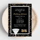 Cette grande invitation à la fête de 35ème anniversaire présente des confettis d'or sur le noir dans l'arrière - plan avec un verre pour un toast et le numéro "35", ce qui est une excellente façon pour les invités invitations à une fête de 35ème anniversaire. Copyright henishouseo