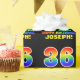 Dieses lustige, fröhliche und farbenfrohe Geburtstagsdesign zeigt eine große Zahl "36" und die Meldung "HAPPY BIRTHDAY", beide mit einem inspirierten Regenbogenspektrum-Farbverlauf, zusammen mit einem kühnen gelben personalisierten Empfängernamen. Der Hintergrund ist schwarz. So ein lustiges Packpapier kann verwendet werden, wenn man ein Geschenk oder Geschenk zu Ehren eines sechsunddreißigsten Geburtstages von jemandem gibt. [~Z0000475]