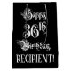 Dieses elegante und aufwändige Geschenktütendesign mit der Meldung "Happy 36 th Birthday" in aufwändigem Text im Stile eines Drehbuchs auf schwarzem Hintergrund. Es hat auch einen bearbeitbaren Empfängernamen. Eine Geschenktasche wie diese kann verwendet werden, wenn Sie ein Geschenk oder Geschenk zu Ehren von jemandem 36. Geburtstag. [~Z0000557]