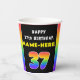 Dieses fröhliche und lustige Geburtstagskassensystem mit einer großen Zahl "37" mit einem farbenfrohen Regenbogenspektrum inspiriert Farbverlaufsmuster, mit der Meldung "HAPPY 37. BIRTHDAY" und einem personalisierten Empfängernamen. Geburtstagsthematische Papiertassen wie diese könnten sich bei einer Geburtstagsfeier für jemanden, der seinen siebzigsten Geburtstag feiert, amüsieren. [~Z0000639]