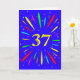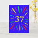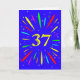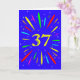 Une carte explosive de 37ème anniversaire ! Quelle merveilleuse façon d'envoyer des salutations d'anniversaire. Le numéro 37 en jaune vif avec une explosion de couleurs vives et d'étoiles.