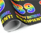 Dieses lustige, fröhliche und farbenfrohe Geburtstagsdesign zeigt eine große Zahl "39" und die Meldung "HAPPY BIRTHDAY", beide mit einem Regenbogenspektrum inspirierte Musterfärbung, zusammen mit einem kühnen gelben benutzerdefinierten Empfängernamen. Der Hintergrund ist schwarz. So ein Geburtstagsthema könnte dazu verwendet werden, ein Geschenk oder Geschenk zu verpacken, das zur Feier des neununddreißigsten Geburtstages von jemandem gegeben wird. [~Z0000475]