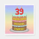 Dieses fröhliche und lustige Geburtstagszeitpapier-Serviettendesign zeigt einen Cartoon-Stil mit einer dreistufigen Geburtstagstorte mit nummerförmigen Kerzen auf der Oberseite, die das Alter "39" zeigt, zusammen mit der Meldung "HAPPY 39TH BIRTHDAY" und einem benutzerdefinierten Empfängernamen. Der Hintergrund hat ein mehrfarbiges, pastellfarbenes Regenbogenspektrum, inspiriert Farbverlaufsmuster. Hochwertige Geburtstagsthemen-Papierservietten wie diese können bei einem Party zum 39. Geburtstag von jemandem verwendet werden. [~Z0000623]