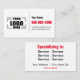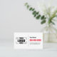 Haben Sie ein Logo für Ihr kleines Unternehmen und wollte, es zu Ihren Visitenkarten hinzuzufügen? Dann ist die 3,5" x 2" doppelseitige schwarz und rot Visitenkarte für Sie! Diese Visitenkarte ist Teil eines kompletten "Your Logo Here,"-Branding-Pakets mit passenden Schildern für den Garten, Autos, Magneten, T - Shirt und vielem mehr für Ihr kleines Unternehmen. Diese Visitenkarte ist vom Text, den Farben und dem Hintergrund vollständig anpassbar. Sie können sogar ein hochauflösendes JPEG Ihres Logos in dem vorhandenen Platzhalterbild von .75" x 1.25" hinzufügen. Kontaktieren Sie mich für weitere Design-Hilfe. Die Preisnachlässe beginnen mit dem Kauf von 2 Paketen mit 100 Karten oder mehr.