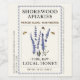 Honigetikett mit lebendigen Honigbienen und Lavendel, umgeben von Ihrem Namen, Ort und Honigbezeichnung (Roh, Handflaschen, Single usw.).