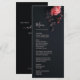 Dark moody romantic apricot 3D rose menu card with bride and groom name and the wedding date on the backside.