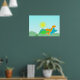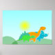 3 Dinosaurier Friends Poster. Drei niedliche kleine Dinosteine: grüner Stegosaurus, orangefarbener Diplodocus und blaue Triceratops auf einem fröhlichen Tagesposter. Dieser helle Poster-Druck ist vollständig anpassbar, fügen Sie Ihren Text und Bilder! Ein tolles Cartoon Dinosaurier Poster für den kleinen Dino-Fan!