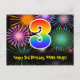 3. Geburtstag - Fun Fireworks Pattern + Regenbogen Postkarte