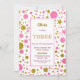 Ein rosa und goldene Sterne, und Flecken, wie riesige Konfetti, 3. Geburtstag Party Einladung.