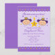 Entzückender Prinzessinentwurf für den dritten Geburtstag der Zwillinge zwei niedliche kleine Prinzessinnen mit den lila Haar- und Goldkronen kennzeichnend umgeben durch Polkapunkte. Eine Nr. 3 ist auf einem Geburtstagskerzenstern zwischen ihnen. Lila ausgebogte Grenze. Kundengerecht! Vervollkommnen Sie für ihren dritten Geburtstag der Hoheiten. PinkInkArt Vorlage!