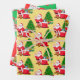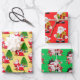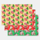 3 Santa Claus Red Green Hintergrund Hübsches Gesch Geschenkpapier Set
