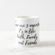 Dies ist eine Kaffeemaschine mit dem Sprichwort: Es gibt 3 wichtige F's im Leben: Glaube, Familie und Freunde.