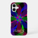 This colorful iPhone 16 case features a hybrid 3D 2D geometric circular theme. The case can be personalized with custom text editing and also features iPhone model case change options.