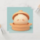 This heart-melting design features an incredibly adorable steamed dumpling with a sweet, minimalist smiling face and soft pink rosy cheeks. Rendered in a high-quality 3D clay style, the dumpling has a smooth, matte doughy texture and sits snugly inside a light orange-brown clay steamer pot. The matching lid of the pot is propped open at the top, perfectly framing the character as if it just finished steaming. Set against a clean, solid teal background, the overall "kawaii" aesthetic is modern, bright, and full of gentle charm, making it an irresistible choice for any fan of dim sum, Asian cuisine, and whimsical character art. This cheerful dumpling postcard is a wonderful choice for sending a "thinking of you" note or a playful greeting to a friend who loves foodie adventures. You might choose to use this cute food card for a dinner party invitation or to celebrate a fun culinary milestone with your family members. It also makes a precious decorative piece for a kitchen wall or a bright addition to a food-themed scrapbook as a small token of happiness. This versatile design is also an excellent choice for restaurant grand opening announcements, dim sum brunch invites, or as a heartwarming way to share a message of joy for any situation or event.