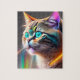 Farbenfrohe Niedliche Katze mit Neonbeleuchtung und Regenbogenfarben im 3D-Stil, digitale Malerei buntes Katzenposter für Kinderzimmer, Katzenpuzzle,