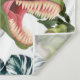 A playful 3D-style dinosaur bursts through a torn paper effect, creating the illusion of jumping right out of the design. With its wide-open jaws and a fun, dynamic expression, the dinosaur brings energy and excitement. Surrounded by bright green leaves, the scene feels lively and adventurous—perfect for kids’ decorations, party themes, and playful prints.