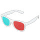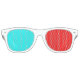 Brillen mit einer Cyan-Linse auf der rechten Seite und einer roten Linse auf der links, die das Erscheinungsbild einer alten 3D-Brille verleiht.