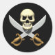 3D-Piratenschädel und überquerte Schwerter Runder Aufkleber