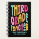 Keep your third grade classroom on track with our personalized “Third Grade Teacher” planner featuring a colorful typography design on a black background. If you have questions or requests regarding this design, please contact us via the chat; we’d be happy to help!