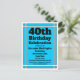 Senden Sie Einladungen zu einer 40. Geburtstagsfeier mit dieser 40. Bright Blue Birthday Einladung Postcard. Maßgeschneidert mit Ihren persönlichen und Party-Informationen.