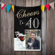 Herzlich willkommen auf 40 elegante Rot Wein Foto 40. Geburtstag Banner. Drei rote Weingläser, trendige Typografie in weißen und goldenen Farben und schwarzem Hintergrund. Personalisieren Sie den Hintergrund mit Ihrem Foto und der Altersnummer.