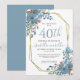 Eine üppige Aquarellfarbe staubblauer Rost Blütenblüte 40. Geburtstagseinladung mit goldenem Rahmen. Solid staubig blau auf der Rückseite der Einladung. Eine üppige und hübsche Aquarellgestaltung.