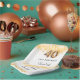 Für ein elegantes Party zum 40. Geburtstag. Ein schick weißer Hintergrund. Dekoriert mit Imitaten Gold Glitzer, Glitzern. Personalisieren und einen Namen hinzufügen. Der Name wird mit einem handgeschriebenen Stilskript geschrieben. Nummer 40 mit Schriftart im Ballonstil.