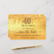 Eine gmädchenhafte und trendige Save the Date-Karte für ein 40. Party. Ein modernes Imitat vergoldet metallische Hintergrund mit Imitaten Glitzer Tropfen, Farbe Tropflook. Personalisieren und fügen Sie Datum und Namen hinzu. Der Text: Save the Date ist mit einem großen angesagten, handgeschriebenen Stilskript geschrieben. Nummer 40 mit einem Schriftart im Ballonstil.