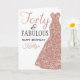 Senden Sie einen personalisierten Geburtstag Gruß mit diesem eleganten Rose Gold Glitzer Kleid vierzig und fabelhafte 40. Geburtstagskarte. Der Name auf der Vorderseite kann für diese besondere Person leicht personalisiert werden, und die Meldung auf der Innenseite der Karte kann auch personalisiert sein.