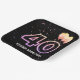 Party Ballons und Konfetti auf schwarzem Hintergrund mit der Neonnummer 40 für ein 40. Party. "Jahre Phantastisch" kann bearbeitet oder gelöscht werden.