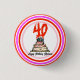 Herzlich willkommen zum 40. Geburtstag - personalisierte Modeaccessoires, Buttone, Knöpfe, Party, Party Dekorationen. Eine köstlich aussehende, dreistufige Geburtstagstorte in Brand mit 40 Geburtstagskandalen. Personalisieren Sie die Geburtstagsnachricht und den Namen des Geburtstags. Rosa und rote Kontur passen zum Zuckerguss auf dem Kuchen.