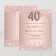Ein modernes, stilvolles und glamouröses Party zum 40. Geburtstag. Eine Rose goldener Hintergrund mit Tropfen, Farbe Tropfen aussehen. Der Name ist mit einer modernen dunklen Rose goldfarbenen Handschrift geschrieben, die als Stilschrift dient. Personalisieren Sie Ihre Party-Daten und fügen Sie sie hinzu. Nummer 40 wird mit einem Schriftart im Ballonstil geschrieben, Skript.
